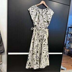 Chic midi dress with a stylish leaf pattern. Features a flattering fit and elegant design. Ideal for versatile occasions.