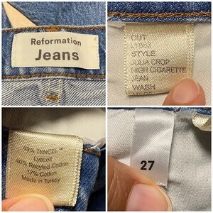 Reformation Jeans Women Size 4/27 Medium Wash Julia Crop High Rise Cigarette