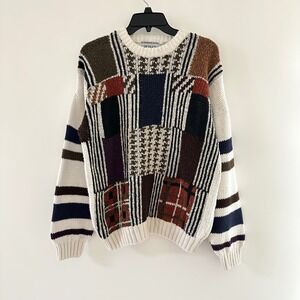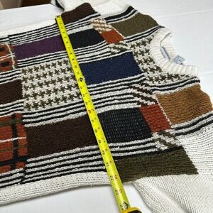 Vintage 90s Patchwork Sweater Mens Medium Multicolor Grandpa Retro Geometric