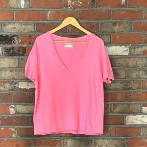 Super cute and comfy wear-everywhere tee from the We the Free collection. Featuring a deep v-neck, dropped shoulders, and raw-edge seaming throughout. Boxy, oversized fit. 100% cotton.