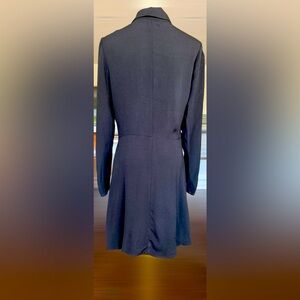 Reformation Black Hugh Dress. The Hugh has a fitted bodice and waist with a more relaxed skirt. This dress features button details, and a collared neckline for a more sophisticated look.