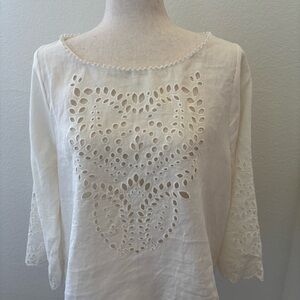 Joie Comosus ivory eyelet linen top in porcelain NWT Size Large