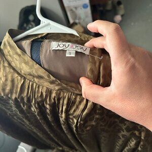 Joy Joy Olive Jacquard Leopard Smocked Waist Mini Dress Size Small NWOT