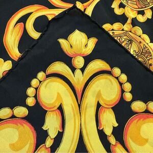 Escada Baroque Gold Black Silk Scarf 34”x35”