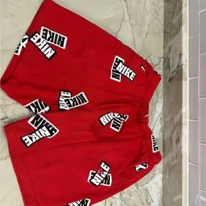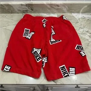 Nike Red Allover Logo Fleece Shorts Men’s Size Large L Athletic Sweat Shorts