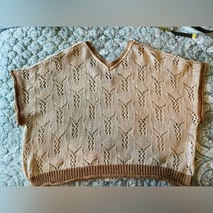 POL Floral Open Tan and Brown oversized L Knit Sweater