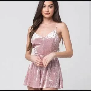 Blush Pink Crushed Velvet Romper Size XS LA Hearts Pacsun Spaghetti Straps