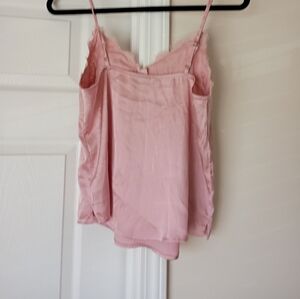 Chic pink camisole with delicate lace trim. Ideal for layering or standalone wear.