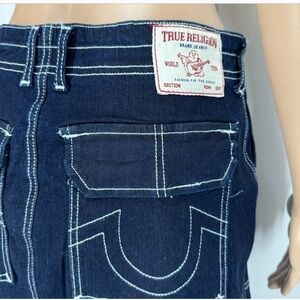 True Religion Women's Dark Blue Denim Maxi Cargo Skirt Sz 29
