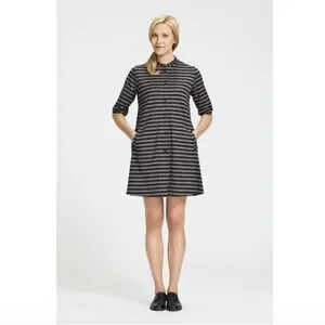 Marimekko Kaste A-Line Dress Cotton Stripes Pockets * FLAWS *