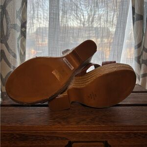 Stylish brown wedge sandals perfect for any occasion. Comfortable and chic design. Only worn once. Like new.