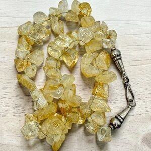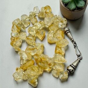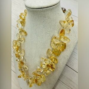 Chunky Genuine Citrine Nugget Statement Necklace 18” Massive 128g Signed
