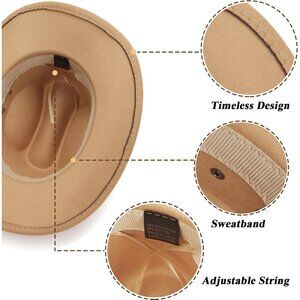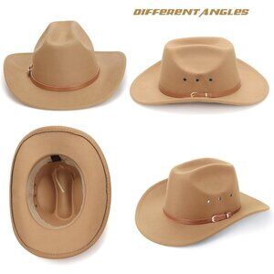 Women's khaki Western With Leather Band Buckle Classic Fedora Cowboy Felt Hat
