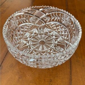Beautifully crafted crystal cut glass bowl. Intricate design with clear detailing. Perfect for decor or serving.