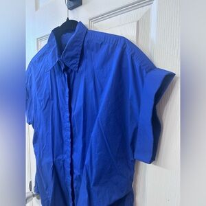 Elegant royal blue shirt with button-up tie front design for a relaxed fit with cuffed short sleeves. Ideal for versatile styling. Good condition.