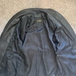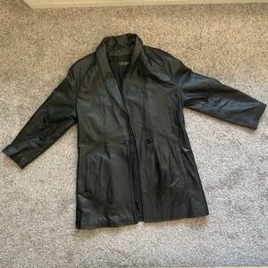 The Chosen brand faux leather jacket for women in size XS features a sleek black design with shoulder pads for added style. Made of polyester with a mid-length cut, this jacket has long sleeves and a classic button-up closure. Perfect for adding a touch of edginess to any outfit, this jacket combines fashion and function for a versatile wardrobe staple.