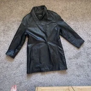 Faux Leather Blazer Jacket Women's XS Black Shoulder Pads Buttons