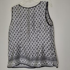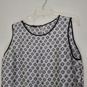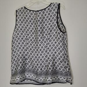 Talbots Black and White Geometric Sleeveless Blouse, Size Large