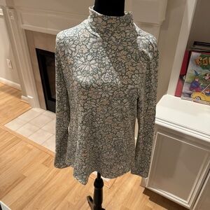 PERUVIAN CONNECTION Sage Etched Flowers T-Neck Pima Cotton/Spandex Medium NWT