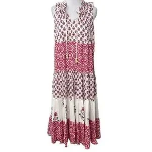 Chelsea & Theodore Pink and White Floral Tiered Boho Maxi Dress XL