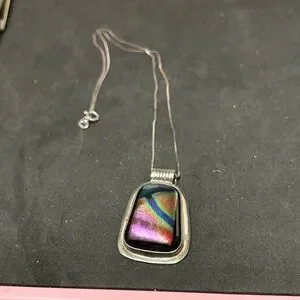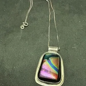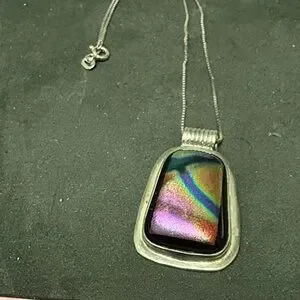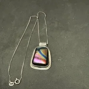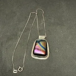 Vintage Sterling Silver Dichroic Iridescent Pendant with 925 Silver Chain