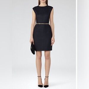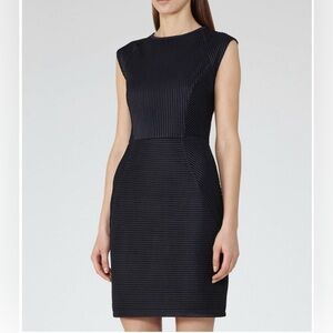 Reiss Size 6 Navy Blue Textured Mesh Cap Sleep Sheath Granger Dress