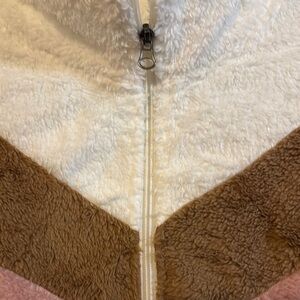 Cozy White Fleece Jacket with Brown and Pink Accents
