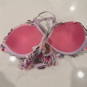 NWOT Victoria’s Secret Pink Date Racerback Bra Front Clasp Lace Leaf Print 32D