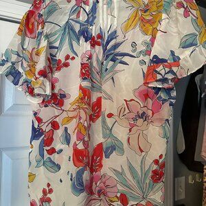 Hale Bob Floral Blouse Size M White Multicolor Silk Top NWOT