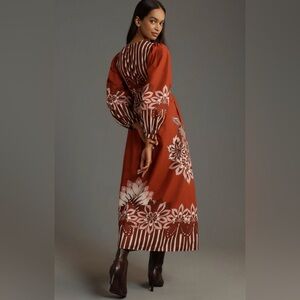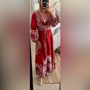 FARM Rio Long Sleeve V-neck Midi Dress Red Size M EUC