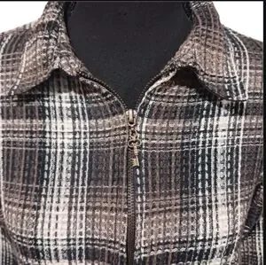 Vintage Ms. Lee Woven Plaid Shacket, Size tag/fabric removed, see measurements. Antique/brasstone hardware. COLORS: Black, beige, cream. 100% cotton (verified). Machine washable.