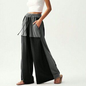 These black boho casual wide leg pants combine relaxed comfort with effortless style. An elastic high waist and loose fit create a flattering silhouette, while the long, flowing legs add movement. Practical pockets and a stretchy waistband make them ideal for late‑fall outings, and the wide leg cut delivers a breezy, laid‑back look perfect for everyday wear.
