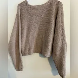 Abercrombie & Fitch Taupe Textured Knit Cropped Sweater
