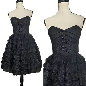 Vintage Betsey Johnson Evening Sheer Lace & Velvet Ribbon Bows Goth Fairy Cupcake Dress Prom Dress Formal Dress