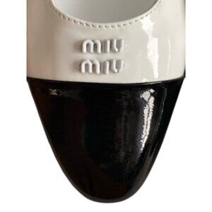 MIU MIU CAP TOE MARY JANE PUMPS, 38, KITTEN HEEL, WHITE BLACK, LUXURY DESIGNER