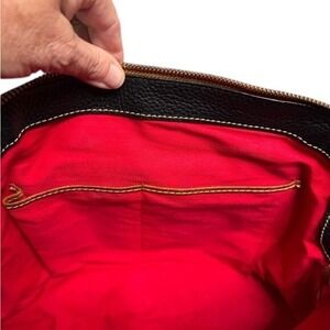 Dooney & Bourke Aubrey satchel in brown pebble leather with a British tan and vachetta leather