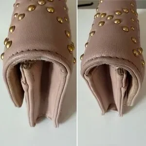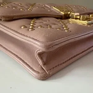 Authentic Christian Dior Dioraddict Studded Chain Wallet in Blush Pink leather.