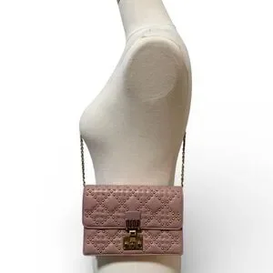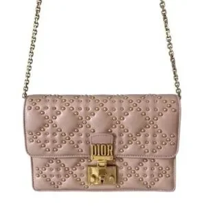Christian Dior Dioraddict Studded Chain Wallet Blush Pink Leather