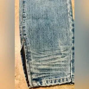 Trendy women’s light blue boyfriend short rise jeans with distressed details. Relaxed fit for everyday comfort by One Teaspoon, with a zipper at the bottom of the legs. Perfect for casual outings. These jeans are a must-have for your wardrobe