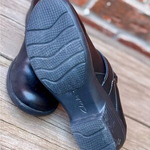 Clarks Angie Mist Black Leather Slip On Clogs Mules Sz 10M