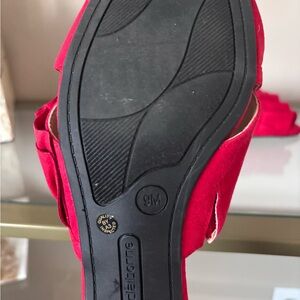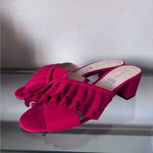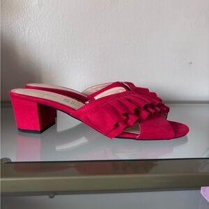 Red mules with ruffle detail. Comfortable block heel. NWOT and never worn. Size 9.