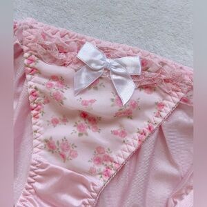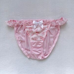 Japanese Cute Bow Sweet Pink Rose Chiffon Ruffle Shiny Tricot Nylon Panties