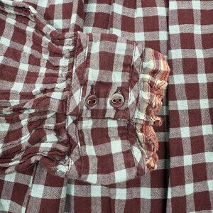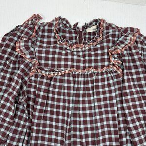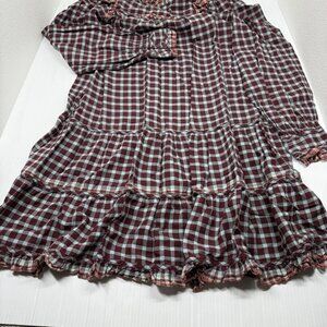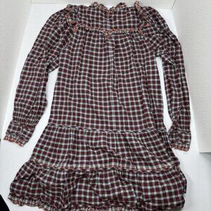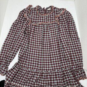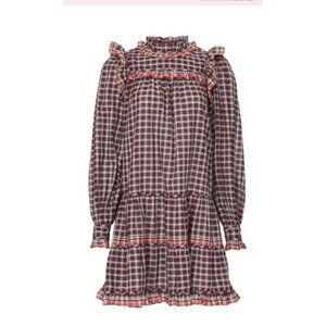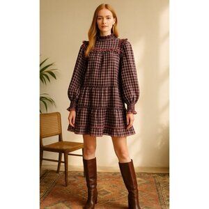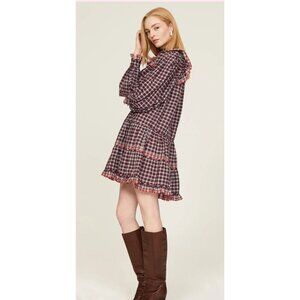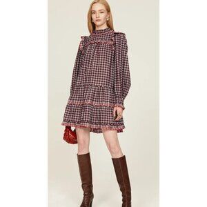 Ulla Johnson Elm Plaid Ruffle Mini Dress Size 8 Burgundy Check Long Sleeve