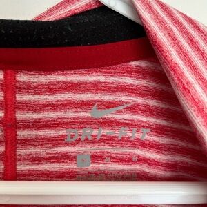 Nike Dri fit golf red striped polo shirt. Perfect for any occasion, it offers comfort and a classic look. EUC size medium