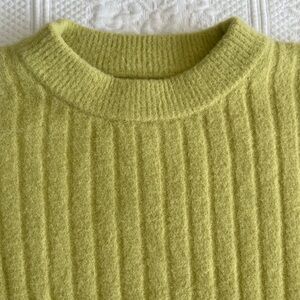 Aerie Buttercream Oversized Ribbed Crew Neck Sweater Lime Green XS