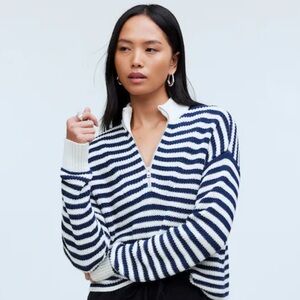 Madewell Ribbed Half-Zip Sweater in Stripe Sz XXS