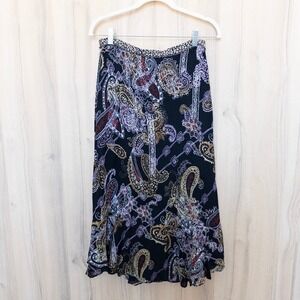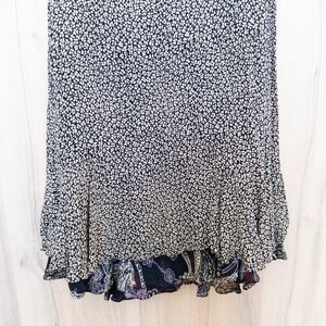 Womens Reversible Midi Skirt Size M Black Multicolor Floral Paisley Ruffle Boho