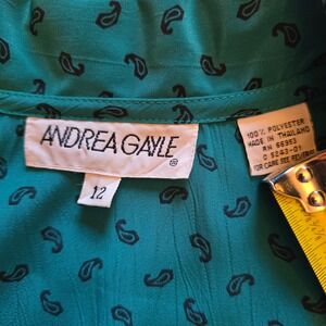Vintage 80s Andrea Gayle Teal Paisley Pleated Skirt Set Blouse 2pc Suit Size 12