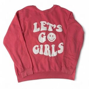 Vibrant pink sweatshirt with 'Let's Go Girls' print. Perfect for casual wear.