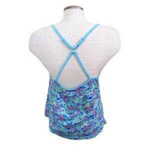 Womens Y2K Babydoll Cami Top Size L Blue Flowers Flamingos Dainty Cottage Fairy